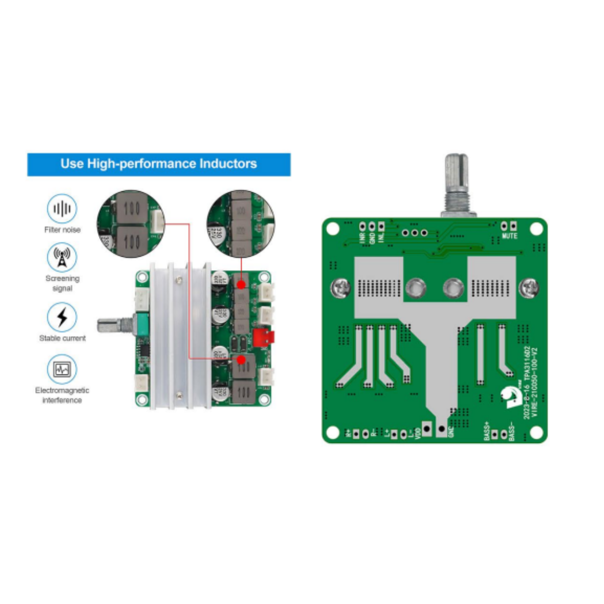 Amplifier Chip: Dual TPA3116D2 high-performance chips