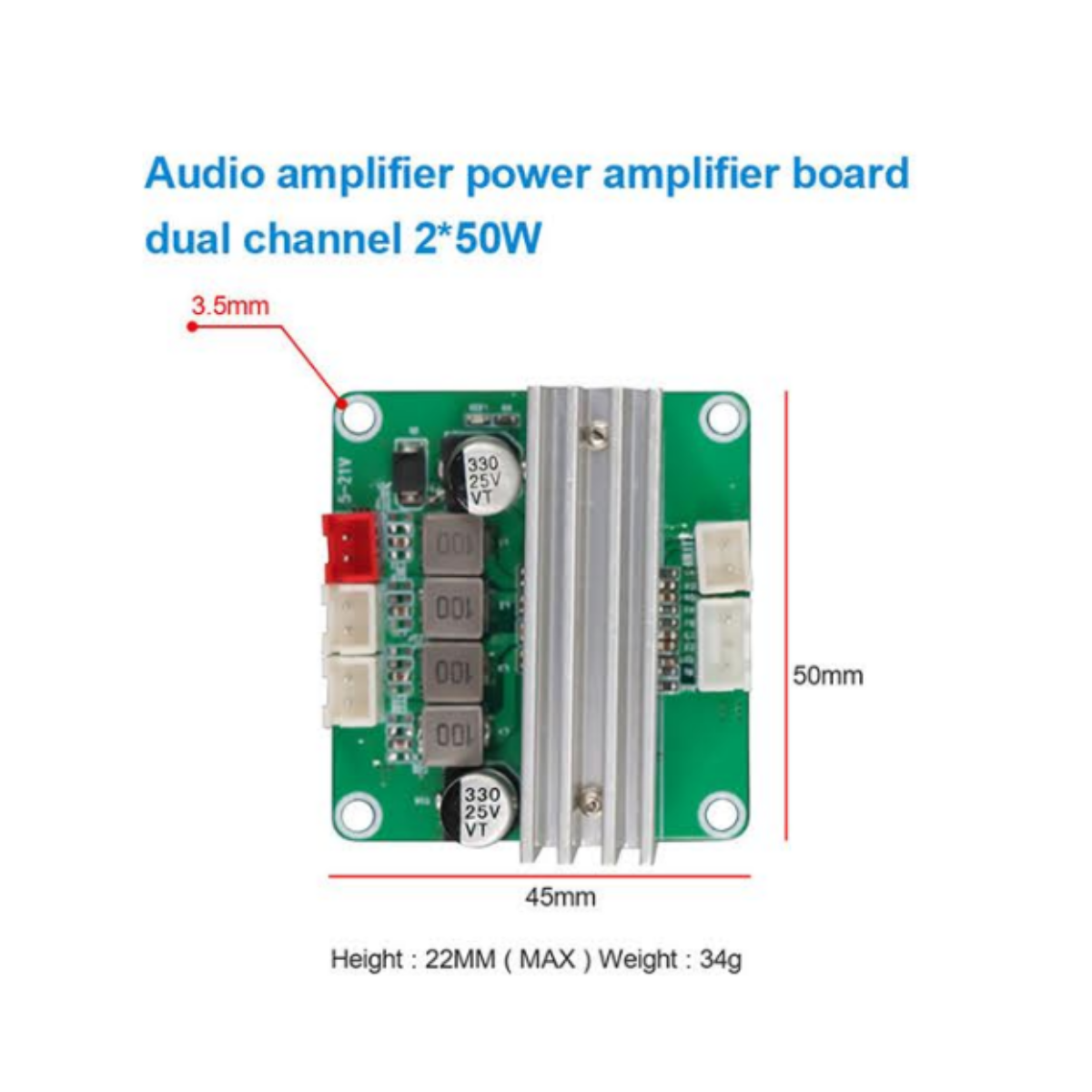 Designed to operate with a DC 12V–24V input, this amplifier provides flexibility and stable performance across a wide range of applications. Its dual channel output ensures balanced stereo sound, while support for 2Ω–8Ω speakers makes it adaptable to different setups.