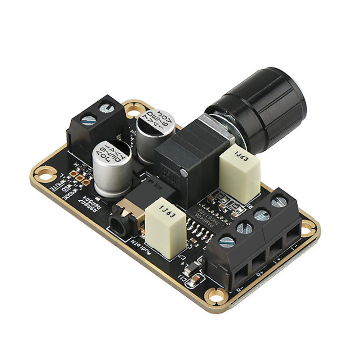 The Class D Audio Power Amplifier 2X5W Dual Channel Audio Stereo DIY Digital Amplifier Module delivers high efficiency (>90%) and low distortion (<10%) for superior audio performance. It features a high-grade pure black gold circuit board, imported KEMET audio capacitors, and gold-plated input terminals for enhanced durability and sound quality. The module includes multiple protections such as reverse power supply input, short-circuit, and overheat safeguards. Certified by FCC, ensuring compliance with international safety standards and providing market access.