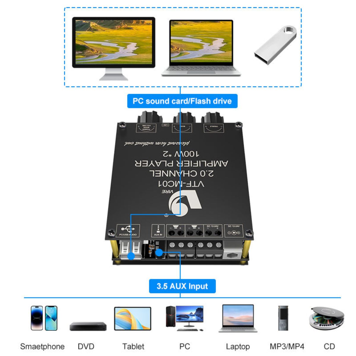 | Power | 4Ω–8Ω | Special Feature | BT / USB / AUX |