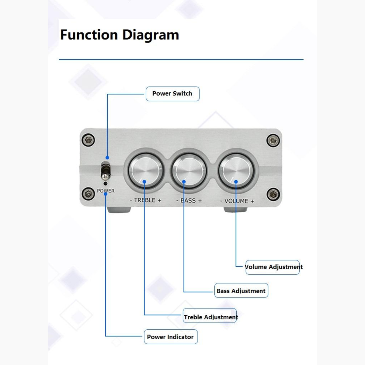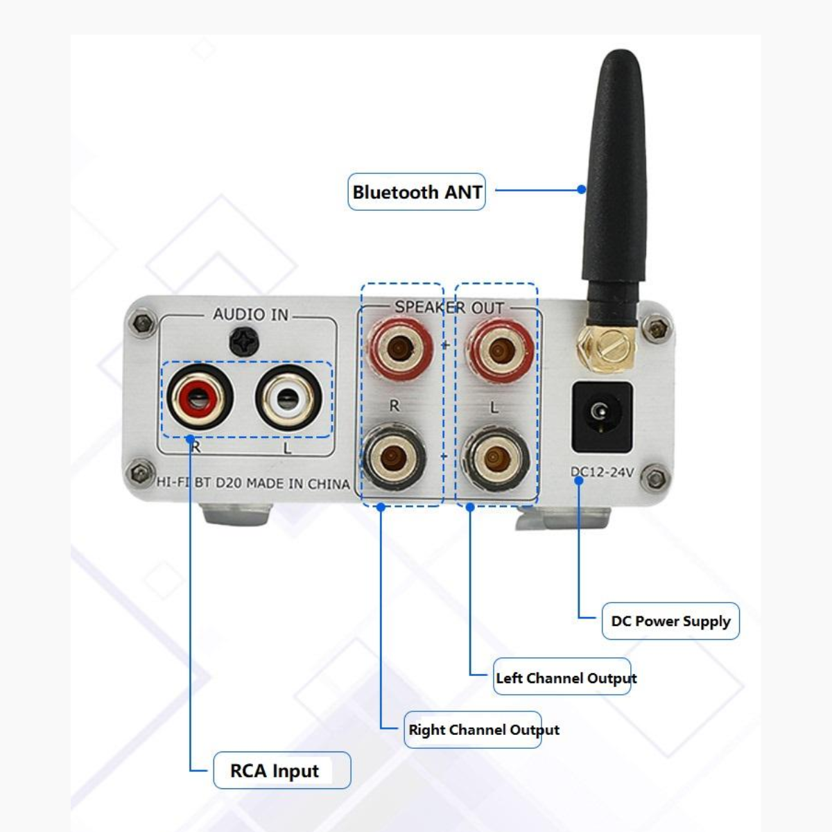 This Home Hi-Fi integrated amplifier features a compact design with a TI TPA3255 chip for clear, noise-free sound and advanced built-in speaker protection. It supports Bluetooth 5.0 with a 39ft wireless range, bass and treble control, and is perfect for small spaces like desktops or offices. The aluminum shell ensures high quality and durability. FCC certification ensures compliance with international safety standards, providing market access assurance. Includes a 24-month warranty and ships with a power adapter for immediate use.