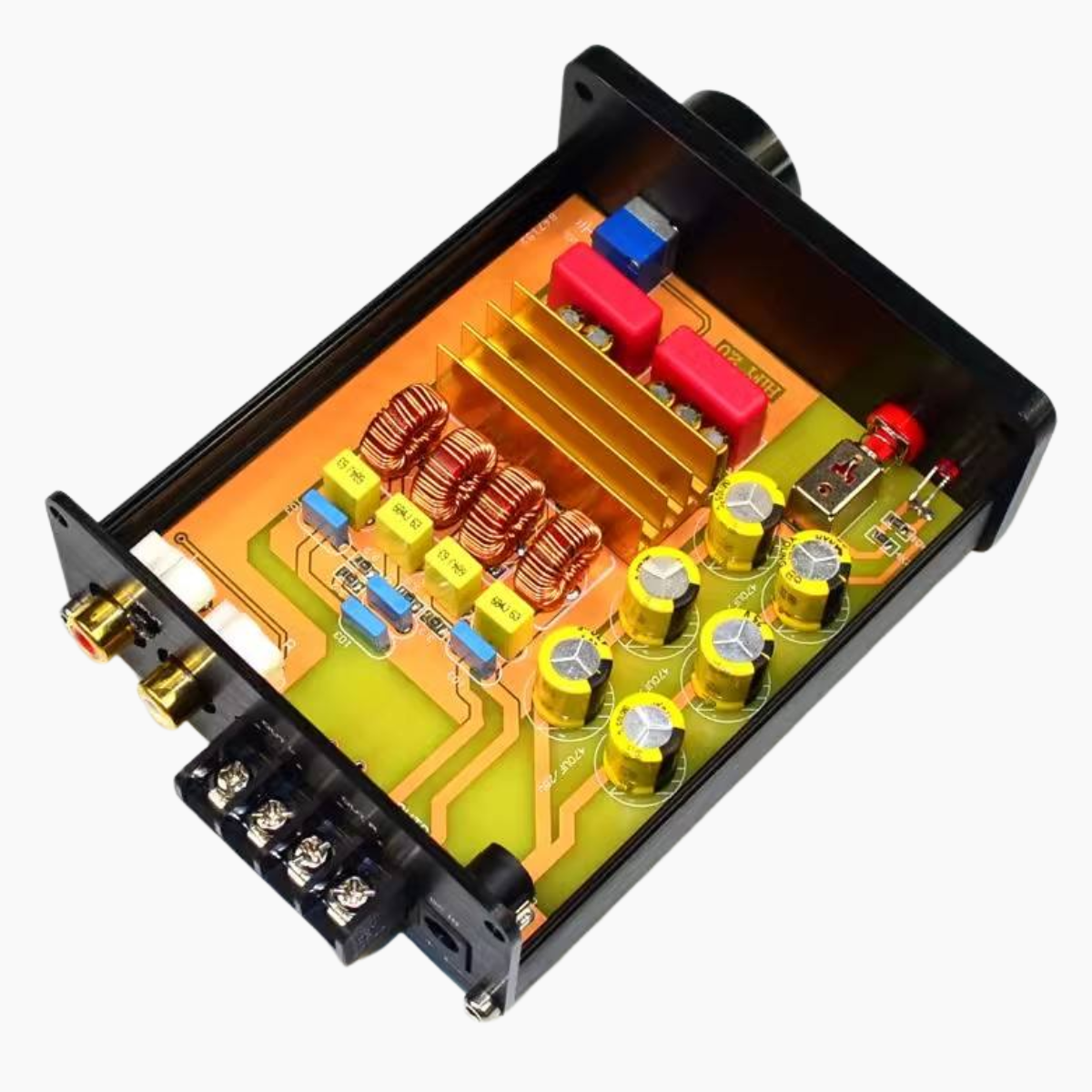 This TPA3116 Class D Mini Digital Power Amplifier delivers 50W+50W output power with advanced circuitry, bass and treble control, and a compact aluminum design for Hi-Fi sound in home or office spaces. It features a TI TPA3116 chip for clear, noise-free audio performance and includes built-in speaker protection. The amplifier is FCC certified, ensuring compliance with international safety standards and providing market access assurance.