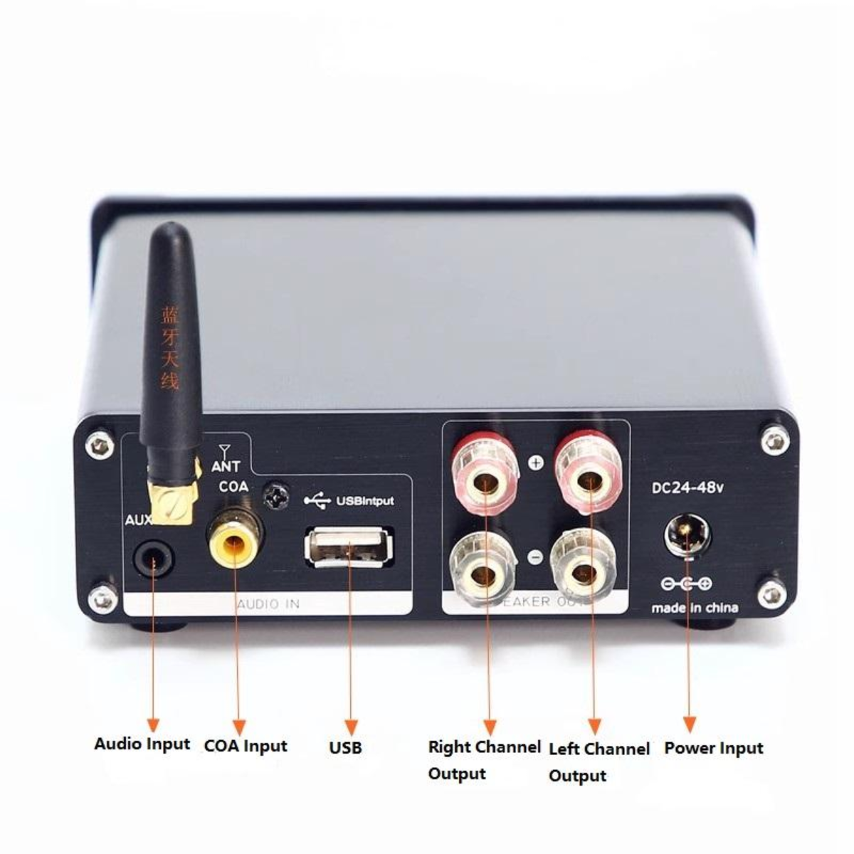 This TPA3255 Power Amplifier delivers 2*300W of HiFi sound with advanced circuitry, bass and treble control, and a Bluetooth 5.0 range of up to 39ft. Its aluminum shell ensures durability while the compact design fits perfectly in smaller spaces like desktops or offices. Equipped with TI TPA3255 chip for crystal-clear audio, it supports multiple formats including MP3, WAV, and FLAC. The product features built-in speaker protection and ships with a power adapter for immediate use. Certified by FCC, ensuring compliance with electronic device safety standards and enhancing market access.