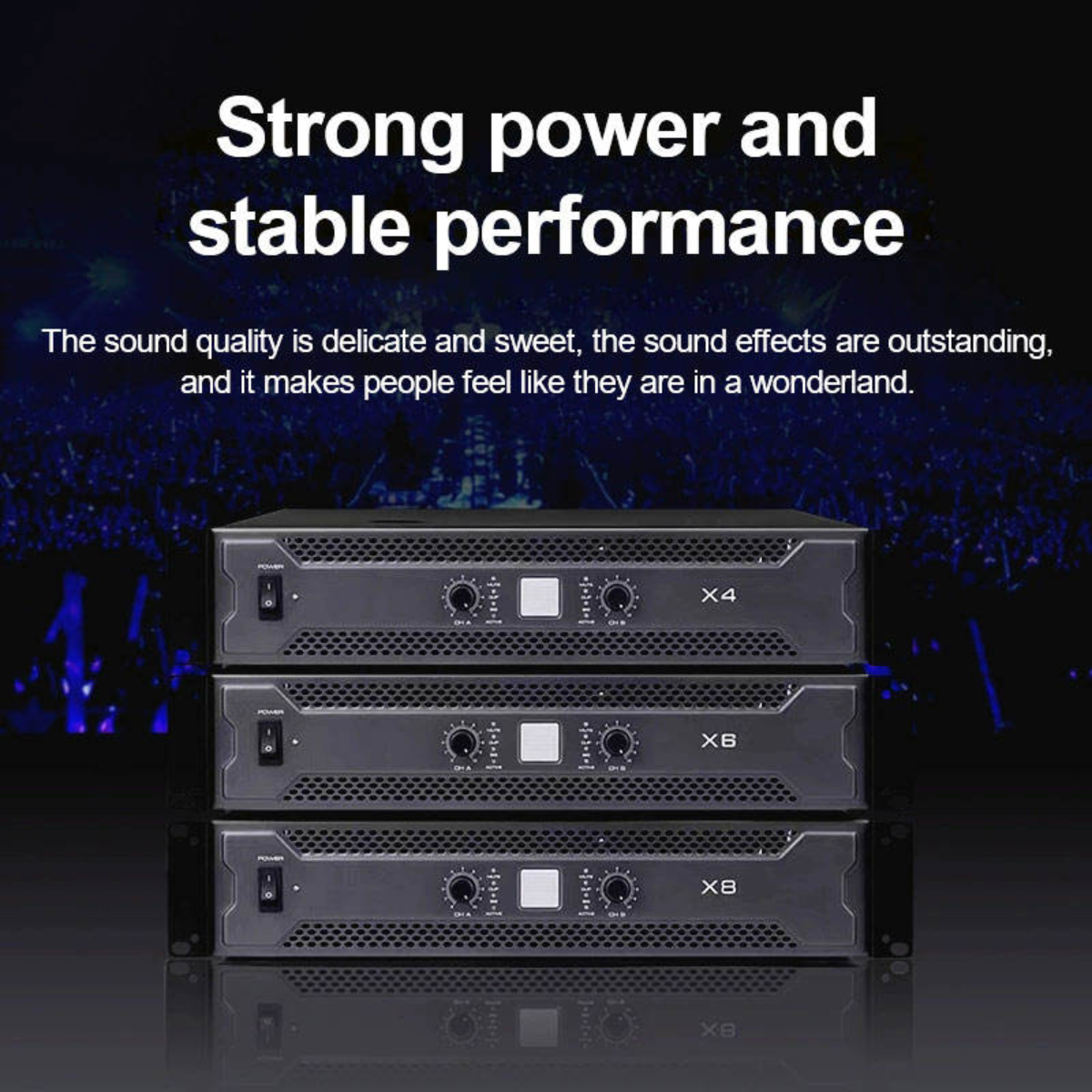 Feature highlights: The VIRE 1000W *2 High Power Professional HiFi Sound Amplifier delivers exceptional performance with a rated power of 1000W*2 @8Ω, ensuring compatibility with linear array speaker systems. It features a frequency response of 20Hz-20KHz+0db/-0.5db, THD <0.1%, and an S/N ratio >100dB for superior audio clarity. Its robust metal construction and advanced heat dissipation design make it ideal for large venues like nightclubs and concert stages. Certified by FCC, it ensures compliance with international safety standards, providing reliable market access.