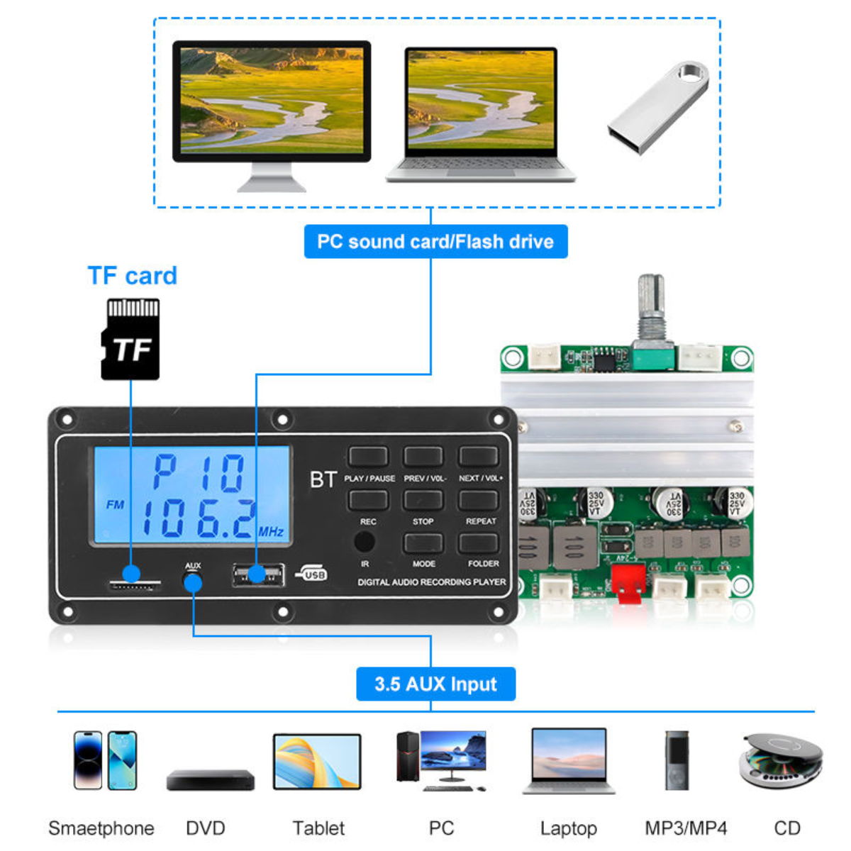 | Special Feature | BT / USB / AUX / TF / FM |