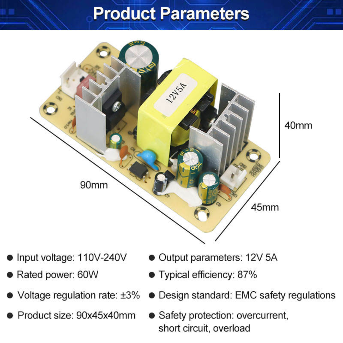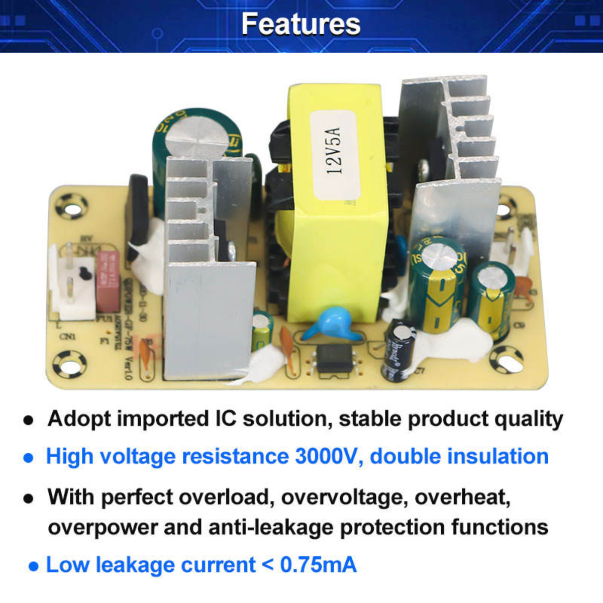 | Output Voltage | 12V | Output Current | 5A |