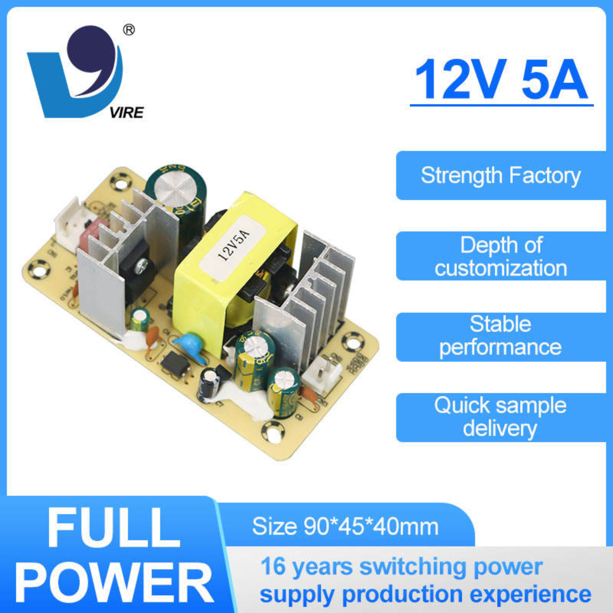 VIRE 60W Power Supply Module 87% Conversion Efficiency