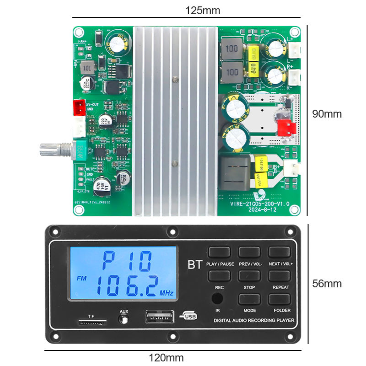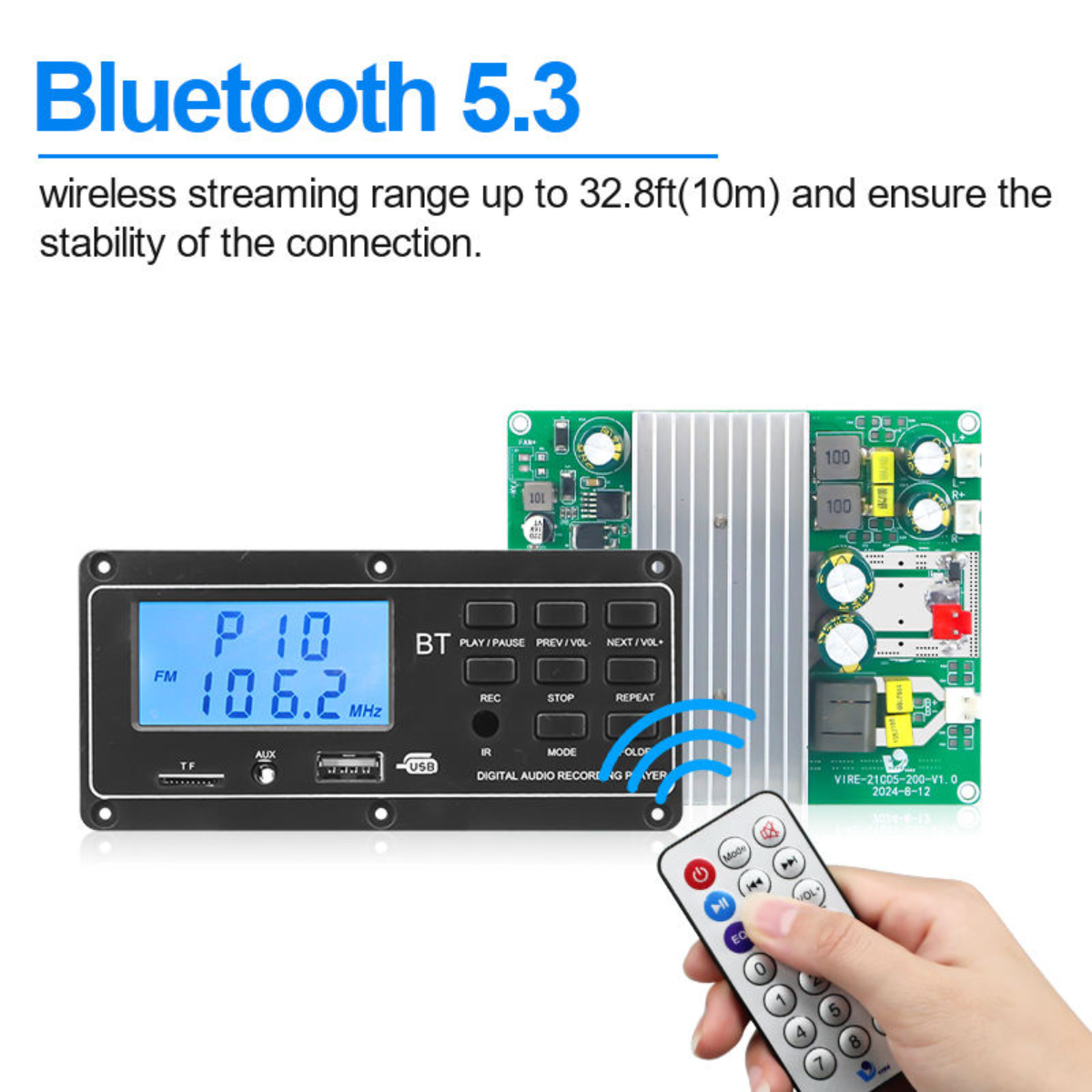 | Product Name | 057LCD+21C050-200 V1.0 | Product Type | Bluetooth Amplifier Board |