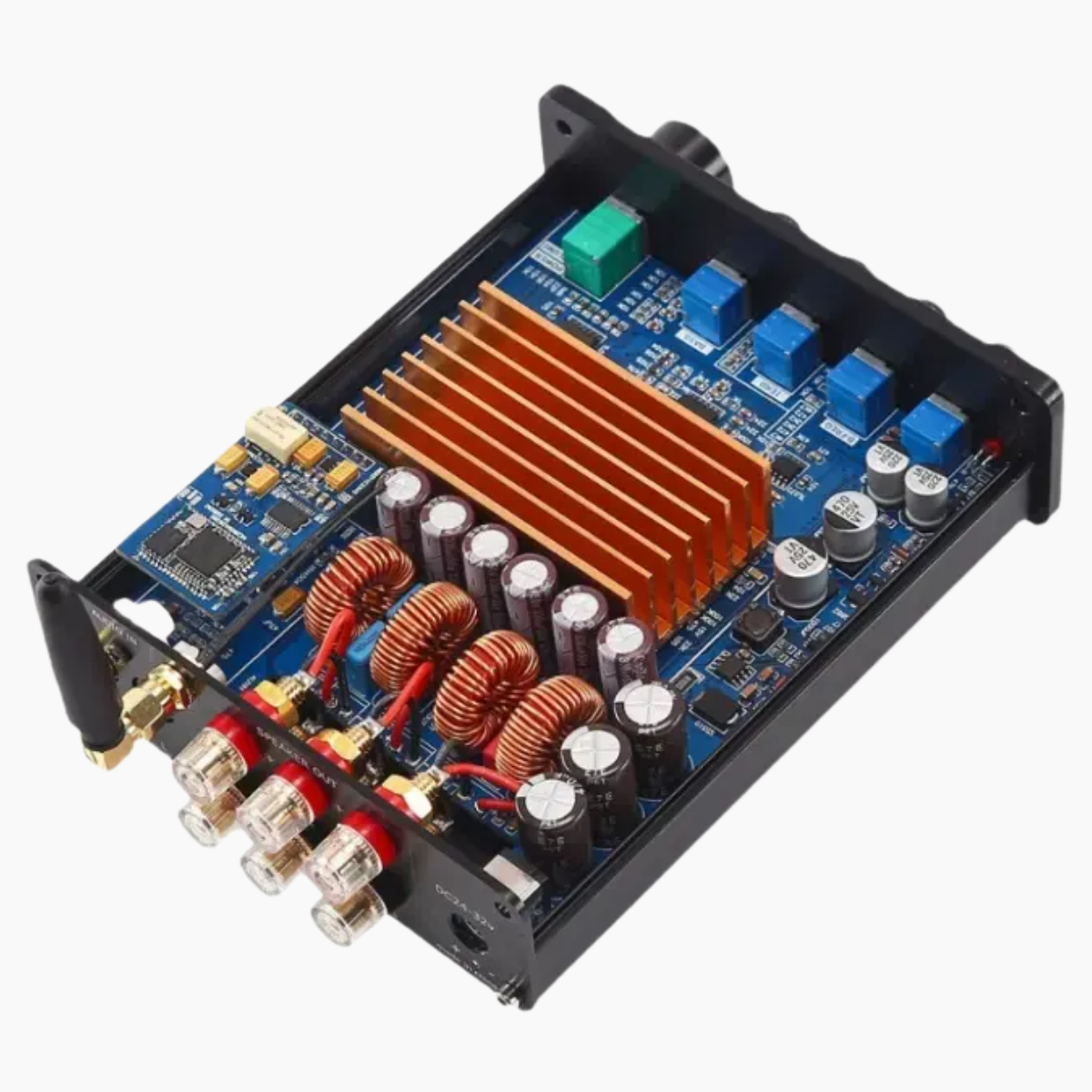 This VIRE Bluetooth 5.0 Receiver Amplifier is a compact and powerful 2.1 channel home desktop amplifier, featuring advanced audio decoding formats like SBC, AAC, aptX, and aptX-HD for high-fidelity sound. It supports multiple functions including FM radio, USB, SD card, AUX input, and remote control, while delivering an output power of 2*120W+240W. Its aluminum construction ensures durability, and the FCC certification guarantees compliance with international safety standards, enhancing market access for buyers.