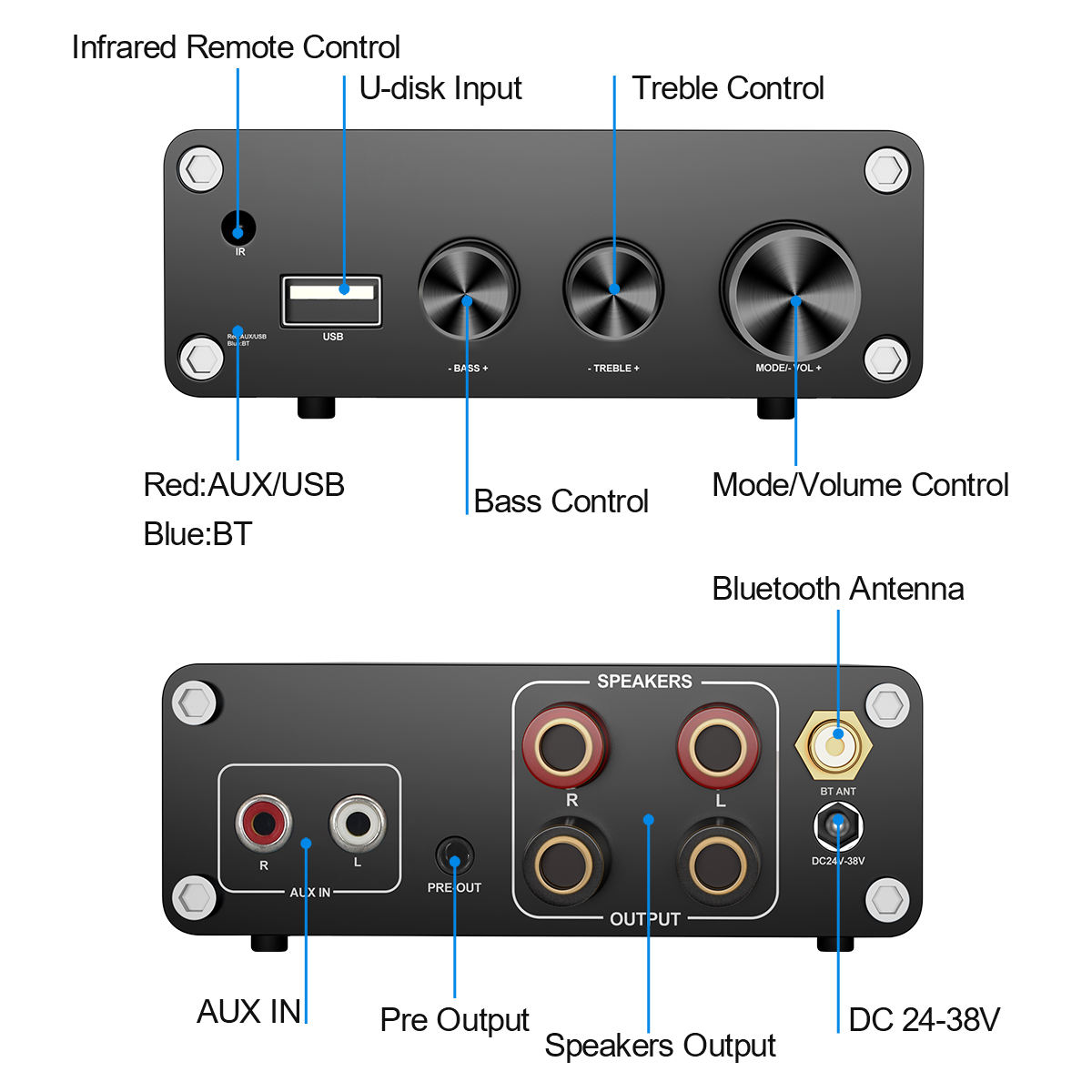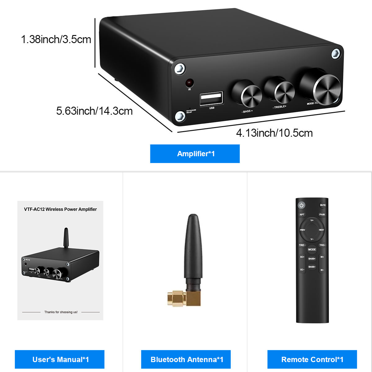 VIRE High Power Bluetooth Audio Amplifier RMS 200W+200W Stereo