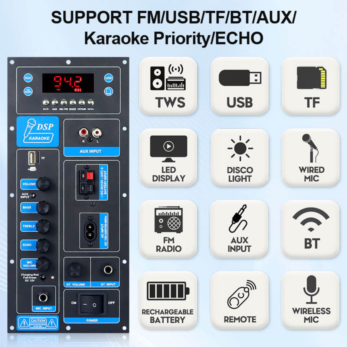 VIRE High Power DSP Bluetooth Amplifier Board 8-18 Inch Trolley