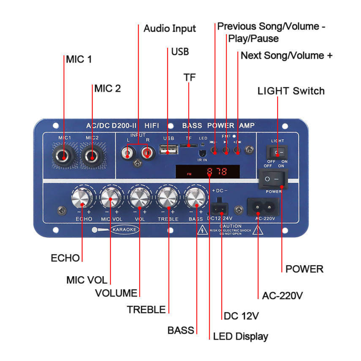 VIRE High Power Dual Channel Powerful Bluetooth Amplifier