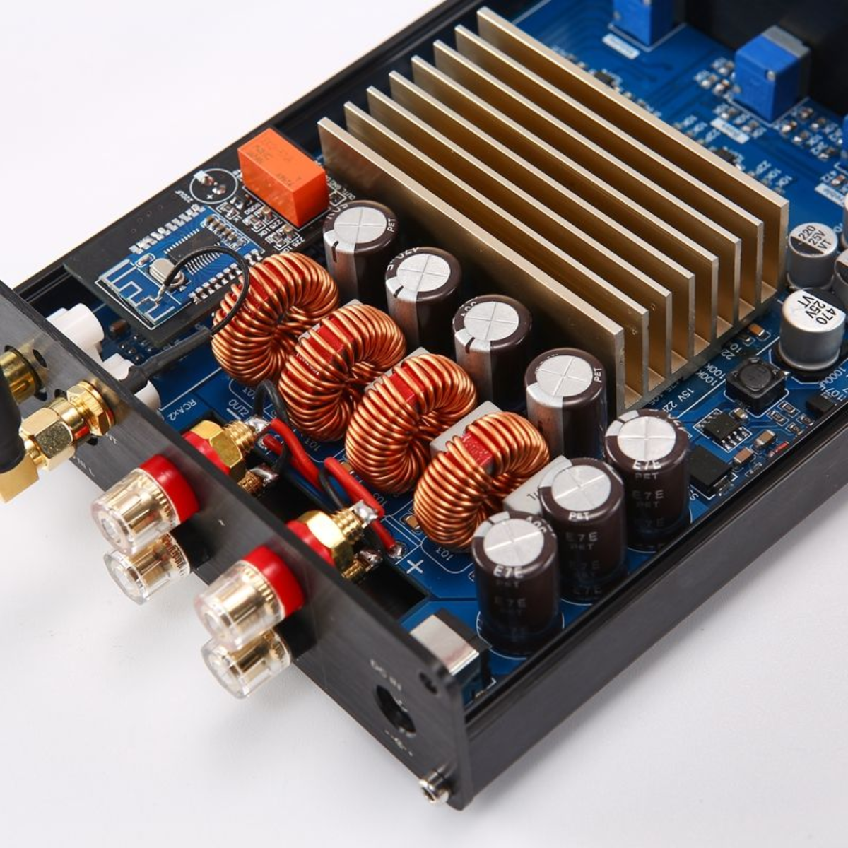 Equipped with the TI TPA3251 chip, this home amplifier delivers clear and noise-free sound, ensuring a Hi-Fi audio experience. It features Bluetooth 5.0 with a 39ft wireless range, bass and treble control, and an aluminum shell for durability. Compact and practical, it's ideal for desktop or small spaces, with built-in speaker protection and a 24-month warranty. Certified by FCC, it ensures compliance with electronic device safety standards, providing buyers peace of mind for market access.