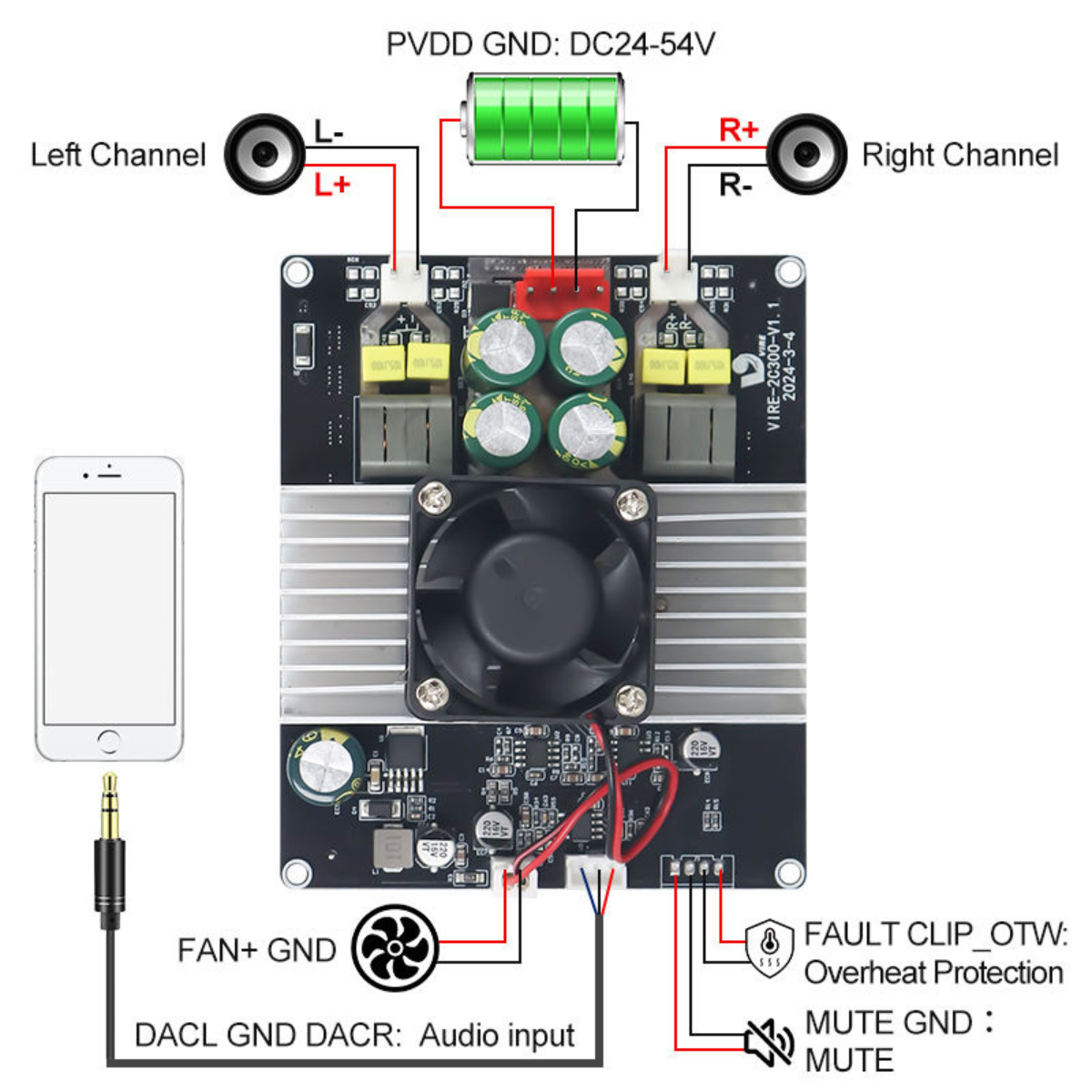 VIRE TPA3255 300W+300W Class D Digital Amplifier Board